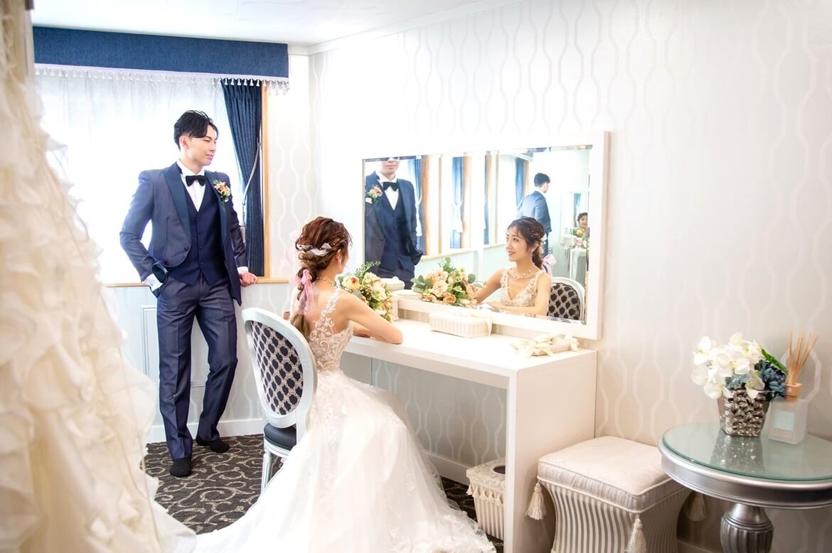 ドレスとアイテムの組み合わせやヘアメイクで花嫁の印象は大きく変わるもの。当会場はアイテム類も充実しています。また、ヘアメイク担当の技術力には定評があります。相談して試して、夢に想い描いたコーディネートを創りあげていきましょう。