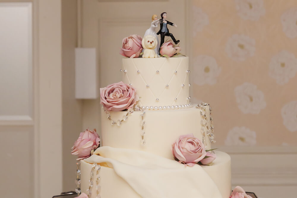 愛犬をイメージしたマジパン、足跡や名前をデザインしたウェディングケーキは「かわいい!」だけじゃない、おふたりだけのストーリー性で、よりゲストの記憶に残るものに。ペーパーアイテムやウェルカムグッズなどアイテムにとりいれるのもおすすめ。