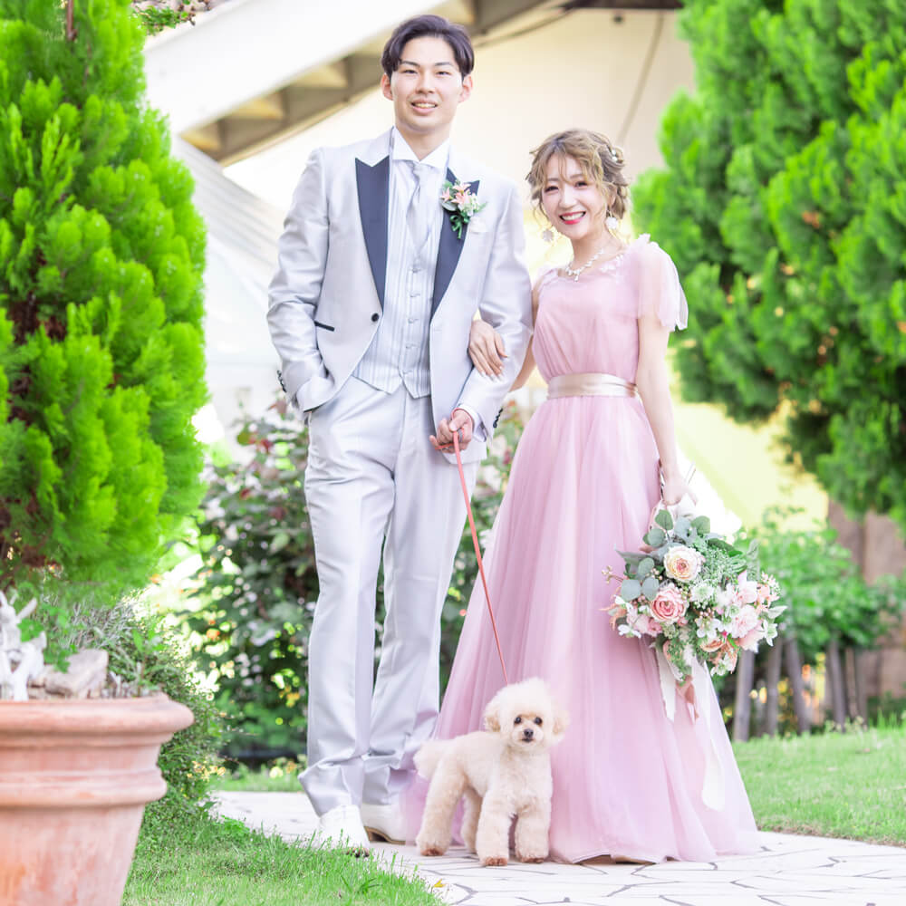 ホテルサンライフガーデンの魅力といえば、「広大なガーデン」。緑やお花が咲き誇る広々としたガーデンで、のんびり記念撮影が楽しめます!スタジオで撮影するよりもリラックスでき、おふたりはもちろんペットも自然な表情の写真が撮れるはず♡
